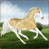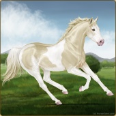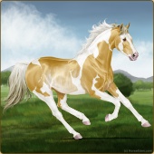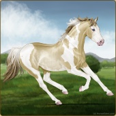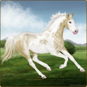 Name: foal 31322353Age: 5 Mare Color: Palomino Pearl Tobiano Splash White Sabino Rabicano Breed: Thoroughbred |  |