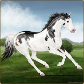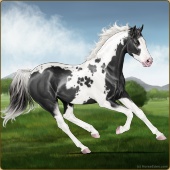 Name: foal 43529091Age: 5 Mare Color: Black Tobiano Splash White Sabino Rabicano Frame Breed: Thoroughbred |  |