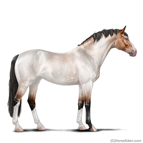 Name: PPP Zz 39300825 BrinAge: 14 Stallion Color: Silver Light Bay Roan Brindle Breed: Irish Sport Horse Foal Rating: P/P/P |  |