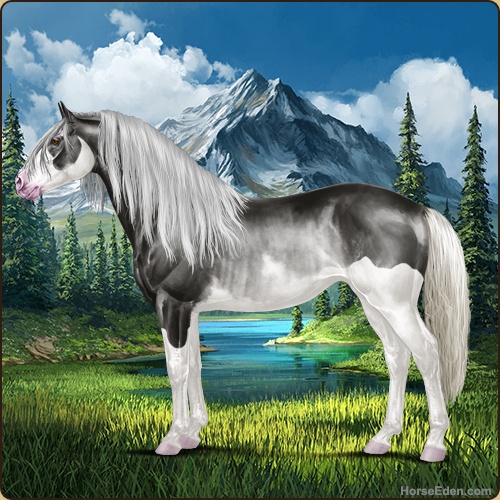 Name: 🍀Zsplsbrb Doom PEEAge: 6 Stallion Color: Silver Smokey Black Splash White Sabino Rabicano Breed: Irish Sport Horse Foal Rating: P/E/E For Breeding! |  |