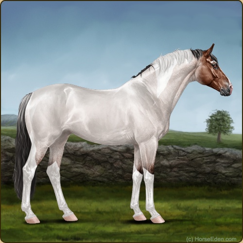 Roan black dun with fading color. will probably look kinda like a grey to be honest lol