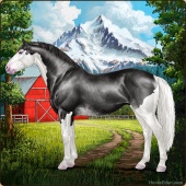 Name: FSplSbRbAge: 10 Mare Color: Black Splash White Sabino Rabicano Breed: Irish Sport Horse Foal Rating: P/P/P |  |