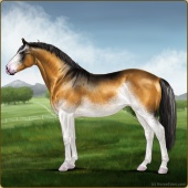 Name: PEESplSbRbAge: 8 Mare Color: Buckskin Roan Splash White Sabino Rabicano Breed: Irish Sport Horse Foal Rating: P/E/E |  |