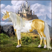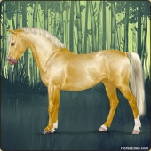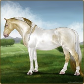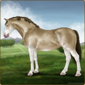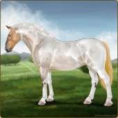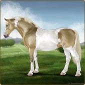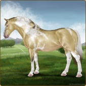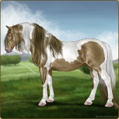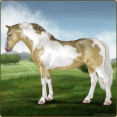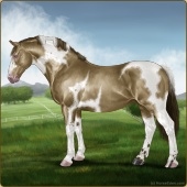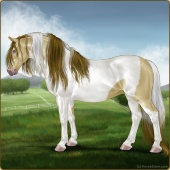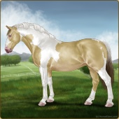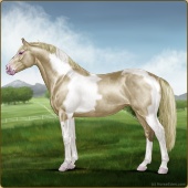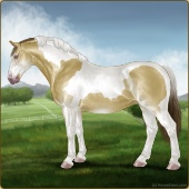 Name: RR Little Gay Horse II EWEAge: 15 Stallion Color: Amber Creme Tobiano Breed: Irish Draught Horse Foal Rating: E/W/E Bravery Rating: Sub-Par |  |
