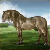Name: Golden Boy MushiAge: 15 Gelding Color: Gold Champagne Breed: Irish Draught Horse Foal Rating: E/E/E |  |