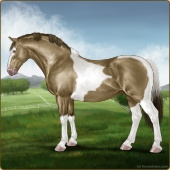 Name: RR Peacher EEEAge: 6 Mare Color: Amber Dun Tobiano Breed: Irish Draught Horse Foal Rating: E/E/E Bravery Rating: Sub-Par |  |