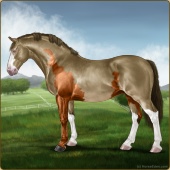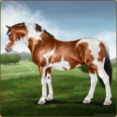 Name: NASom X Paint 183Age: 13 Stallion Color: Flaxen Red Roan Dun Tobiano Breed: Irish Draught Horse Foal Rating: P/P/P |  |