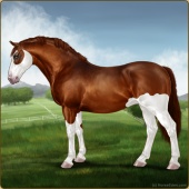 Name: NASom X Snowm 192Age: 4 Stallion Color: Chestnut Splash White Breed: Irish Draught Horse Foal Rating: E/E/E |  |