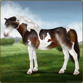 Name: TV Rebound Romance PPPsAge: 11 Mare Color: Black Tobiano Breed: Irish Draught Horse Foal Rating: P/P/P Bravery Rating: Sub-Par |  |