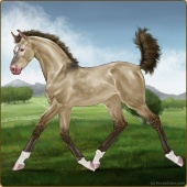 Name: Champagne QuestsAge: 0 Stallion Color: Amber Champagne Tobiano Breed: Irish Draught Horse Foal Rating: E/E/E Bravery Rating: Sub-Par |  |