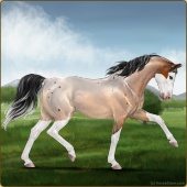 Name: Shaco X Avidi 193Age: 6 Stallion Color: Silver Buckskin Pearl Sabino Breed: Anglo Arabian Foal Rating: P/E/P |  |