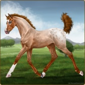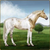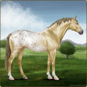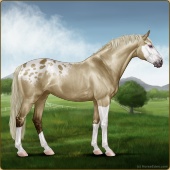 Name: Rex HuntAge: 6 Stallion Color: Classic Champagne Splash White Blanket Appaloosa Breed: Sport Pony Foal Rating: E/E/E |  |