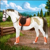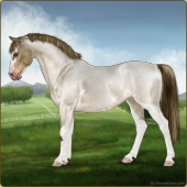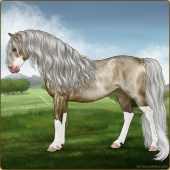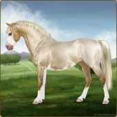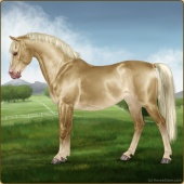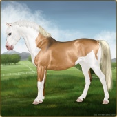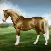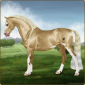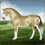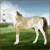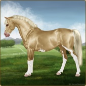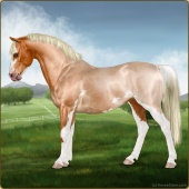 Name: EEE PAL SPL WHT Age: 6 Mare Color: Palomino Splash White Breed: Sport Pony Foal Rating: E/E/E |  |