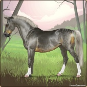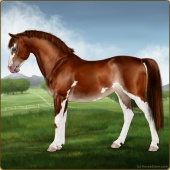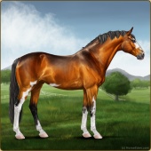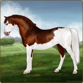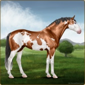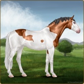 Name: Apprentice Artist EEEAge: 7 Stallion Color: Mahogany Bay Splash White Breed: Sport Horse Foal Rating: E/E/E For Breeding! |  |