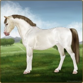 Name: NDS Vanilla (EEW)Age: 6 Mare Color: Palomino Rabicano Frame Breed: Sport Pony Foal Rating: E/E/W Bravery Rating: Sub-Par |  |