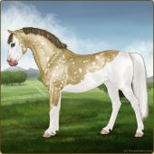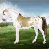 Name: ★ Stan [Ch To Sp Lp]Age: 8 Stallion Color: Gold Champagne Tobiano Splash White Appaloosa Breed: Sport Pony Foal Rating: E/E/E |  |