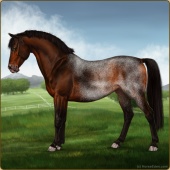 Name: ♱ Dancin Down Bourbon StAge: 12 Stallion Color: Blue Roan Splash White Varnish Appaloosa Breed: Sport Pony Foal Rating: E/W/W For Breeding! |  |