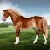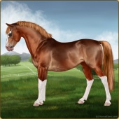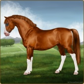Name: Danci X Akras 192Age: 8 Mare Color: Chestnut Splash White Breed: Sport Pony Foal Rating: E/E/E |  |