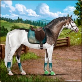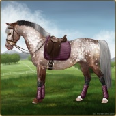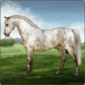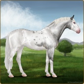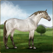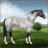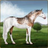 Name: Tatooine LegendAge: 5 Stallion Color: Smokey Blue Roan Splash White Blanket Appaloosa Breed: Sport Horse Foal Rating: E/E/E |  |