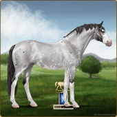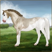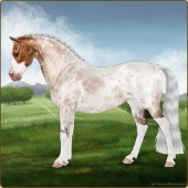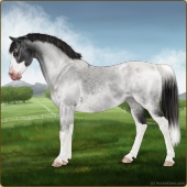 Name: ★ Dancin on Dollars EWWAge: 9 Stallion Color: Silver Light Bay Roan Splash White Frost Appaloosa Breed: Sport Pony Foal Rating: E/W/W |  |