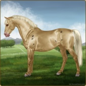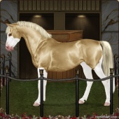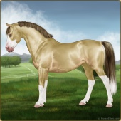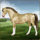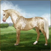 Name: Golden Fantasy (EEE)Age: 11 Stallion Color: Gold Champagne Blanket Appaloosa Breed: Sport Pony Foal Rating: E/E/E For Breeding! |  |