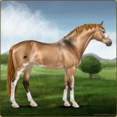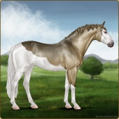 Name: Dancer's ParadiseAge: 11 Stallion Color: Amber Champagne Splash White Breed: Sport Horse Foal Rating: E/W/W For Breeding! |  |