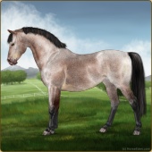Name: (EEE) Night TrainAge: 17 Mare Color: Mahogany Bay Roan Dun Breed: Sport Horse Foal Rating: E/E/E |  |