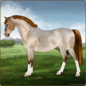 Name: ® Luke EEEAge: 5 Gelding Color: Red Roan Dun Splash White Breed: Sport Pony Foal Rating: E/E/E Bravery Rating: Sub-Par |  |