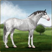 Name: (EWE) Safety Dance 1/10Age: 10 Stallion Color: Classic Roan Grullo Appaloosa Breed: Sport Horse Foal Rating: E/W/E For Breeding! |  |