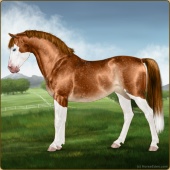 Name: ℓℓ Way Too FancyAge: 9 Mare Color: Flaxen Liver Chestnut Splash White Breed: Sport Pony Foal Rating: E/E/W |  |