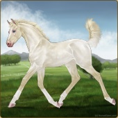 Name: 42249225Age: 1 Filly Color: Smokey Creme Splash White Breed: Irish Sport Horse Foal Rating: E/P/P |  |