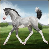 Name: 41174796Age: 5 Mare Color: Silver Smokey Roan Grullo Breed: Sport Horse Foal Rating: P/P/P |  |