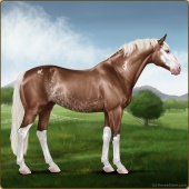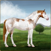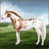 Name: Alone Standing PPPAge: 15 Gelding Color: Flaxen Red Roan Splash White Sabino Varnish Appaloosa Breed: Sport Horse Foal Rating: P/P/P |  |
