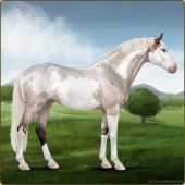 Name: (1/1) Silver SparrowAge: 14 Stallion Color: Silver Roan Tobiano Splash White Frame Varnish Snowflake Appaloosa Brindle Breed: Irish Sport Horse Foal Rating: P/P/P Bravery Rating: Sub-Par For Breeding! |  |