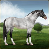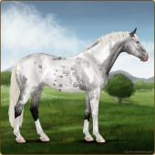 Name: Angelic ReaperAge: 11 Stallion Color: Silver Light Bay Roan Splash White Frame Near Leopard Appaloosa Breed: Sport Horse Foal Rating: S/S/P Bravery Rating: Sub-Par For Breeding! |  |