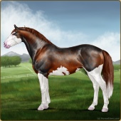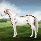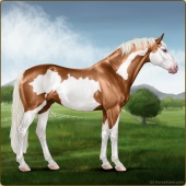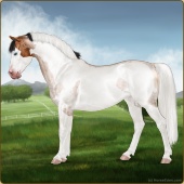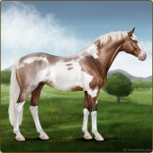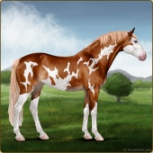 Name: Eleanor SkinnerAge: 14 Mare Color: Light Bay Splash White Sabino Frame Breed: Irish Sport Horse Foal Rating: P/P/P |  |