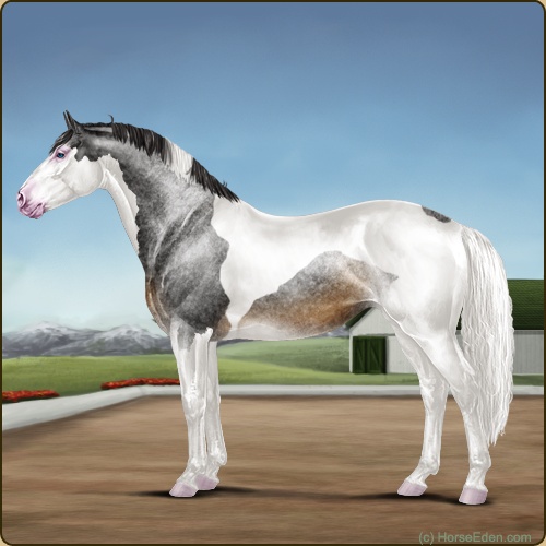 Extension: Ee Agouti: aa Creme: CC Roan: Rnrn Dun: dd Pearl: PrlPrl Silver: zz Champagne: chch Grey: gg White: ww Tobiano: Toto Splash White: Splspl Sabino: Sbsb Rabicano: rbrb Frame: oo Leopard Complex: lplp PATN-1: patn-1patn-1 PATN-2: PATN-2patn-2 Brindle: X-