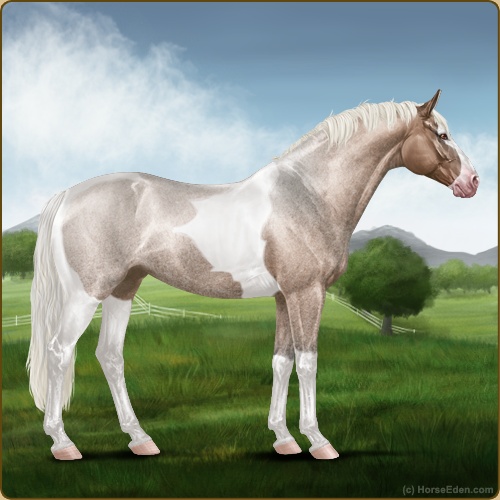 Color: Silver Mahogany Bay Roan Dun Tobiano Splash White