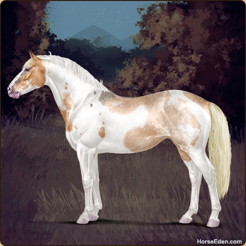Color: Flaxen Red Roan Dun Tobiano Sabino