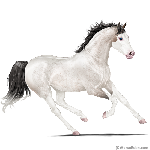 Color: Mahogany Bay Roan Dun Splash White Sabino