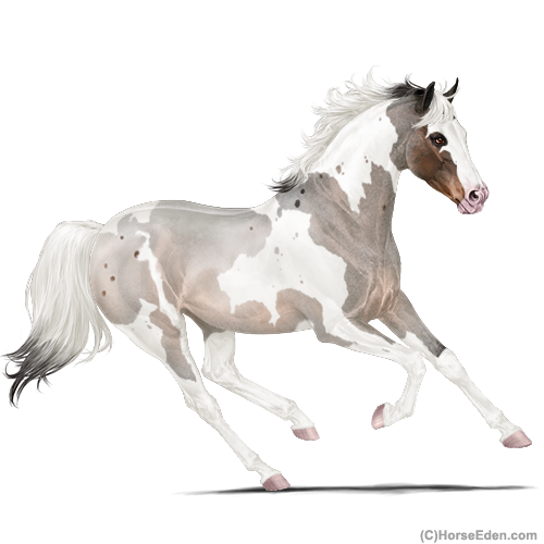 Color: Seal Brown Roan Dun Tobiano Sabino