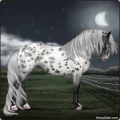 Name: Race of the Ellipse Age: 17 Stallion Color: Silver Amber Creme Dun Pearl Leopard Appaloosa Breed: Knabstrupper Foal Rating: S/A/A For Breeding! |  |