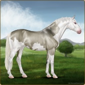 Name: Salute the Grey MorningAge: 3 Mare Color: Silver Dunskin Splash White Sabino Breed: Irish Sport Horse Foal Rating: E/E/E Bravery Rating: Sub-Par |  |