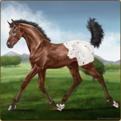 Name: $Spicy Shot PPEAge: 0 Mare Color: Golden Bay Blanket Appaloosa Breed: Knabstrupper Foal Rating: P/P/E |  |