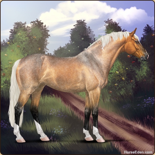 Color: Silver Copper Bay Roan Dun Tobiano