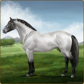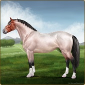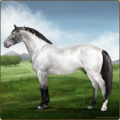 Name: DM Northern AstalAge: 14 Mare Color: Silver Roan Grullo Breed: Irish Sport Horse Foal Rating: E/E/E Bravery Rating: Sub-Par |  |