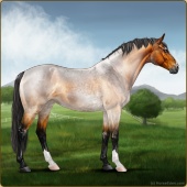 Name: ISH-M4[-E-] ~ 191Age: 6 Mare Color: Roan Grullo Sabino Breed: Irish Sport Horse Foal Rating: P/E/E Bravery Rating: Sub-Par |  |