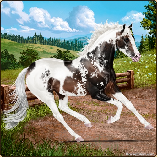 Name: ♚Heir De BoltAge: 10 Gelding Color: Silver Mahogany Bay Tobiano Sabino Breed: Sport Horse Foal Rating: E/E/E |  |