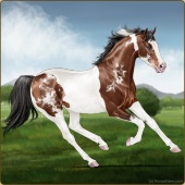 Name: RwE Grand King (EEE)Age: 6 Stallion Color: Palomino Tobiano Sabino Breed: Thoroughbred Foal Rating: E/E/E |  |