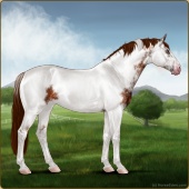 Name: TVK Pierced Heart PEEsAge: 4 Mare Color: Light Bay Blanket Appaloosa Breed: Knabstrupper Foal Rating: P/E/E Bravery Rating: Sub-Par |  |